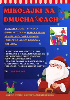 Magiczne Mikołajki dla dzieci w skocznym, świątecznym wydaniu — dmuchańce, elfy przy stolikach z warsztatami, spotkanie z Mikołajem i mnóstwo śmiechu przez cały dzień. Warto wpaść i zabrać ze sobą energię do skakania!