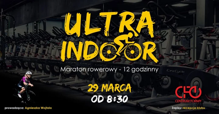 Gotowy na porządną dawkę potu i endorfin? ULTRA Indoor to 12 godzin nieprzerwanej jazdy na rowerach stacjonarnych pod okiem ultramaratonki Agnieszki Wojtali — możesz walczyć o cały czas trwania maratonu albo dołączyć na krótszy odcinek i poczuć wspólną atmosferę. Dołącz i sprawdź, jak daleko się posuniesz!